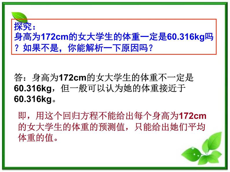 探究:身高为172cm的女大学生的体重一定是60.316kg吗?如果不是,你能解析一下原因吗?