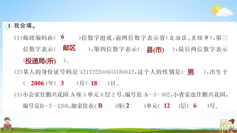 这是一份小学数学人教版三年级上册数字编码教学课件ppt,共17页。PPT课件主要包含了你的学号是多少,二认识身份证,所在省份的代码,所在区县的代码,所在派出所的代码,所在城市的代码,新疆的舅舅,小小设计师,课堂小结,课后作业等内容,欢迎下载使用。