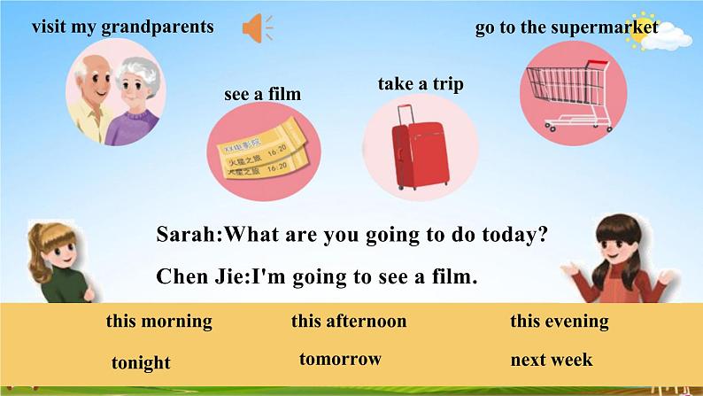Sarah:What are yu ging t d tday?Chen Jie:I'm ging t see a film.