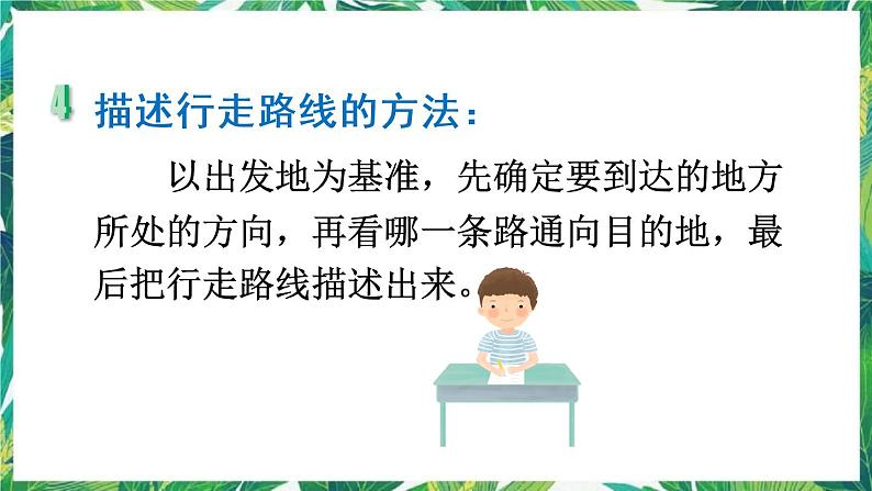 (3)聪聪从电影院出发去邮局。可以先向( )走到 动物园,再向( )走到邮局;也可以先向( ) 走到学校,再向( )走到邮局。