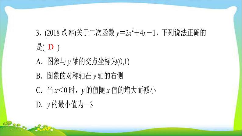 这是一份中考数学突破复习第三章函数二次函数完美课件PPT,共28页。PPT课件主要包含了目录导航,课后作业,y=x2+2,能力提升等内容,欢迎下载使用。