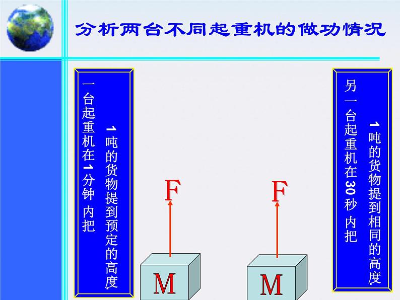 在日常生活中,我们经常说某台机器的功率,或某物体做功的功率,实际上是指某个力对物体做功的功率。例如:1、汽车的功率就是汽车牵引力的功率2、起重机吊起货物的功率就是钢绳拉力