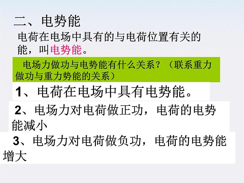 电荷在电场中具有的与电荷位置有关的能,叫电势能。