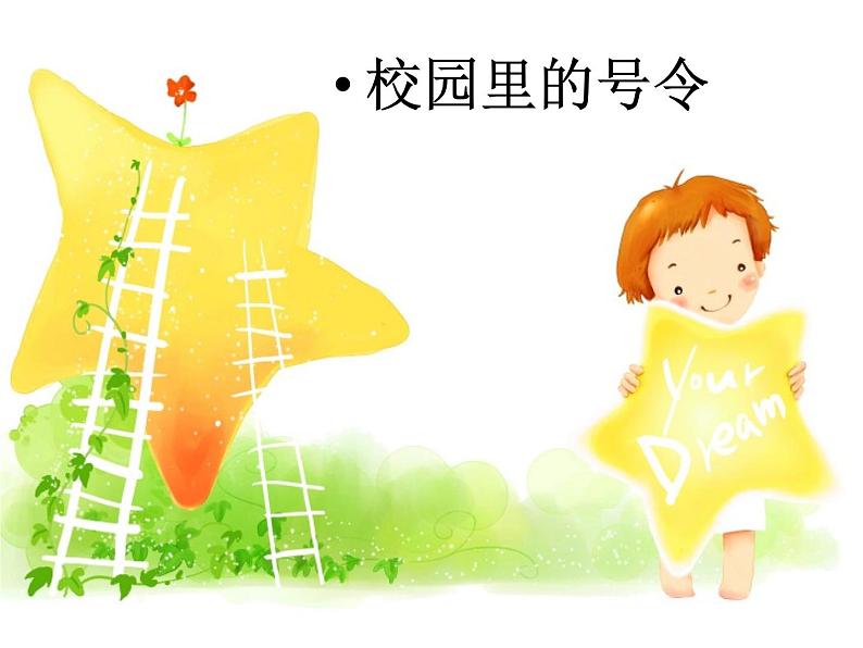 这是一份小学政治 (道德与法治)人教部编版一年级上册6 校园里的号令背景图ppt课件,共12页。PPT课件主要包含了校园里的号令,同学们等内容,欢迎下载使用。