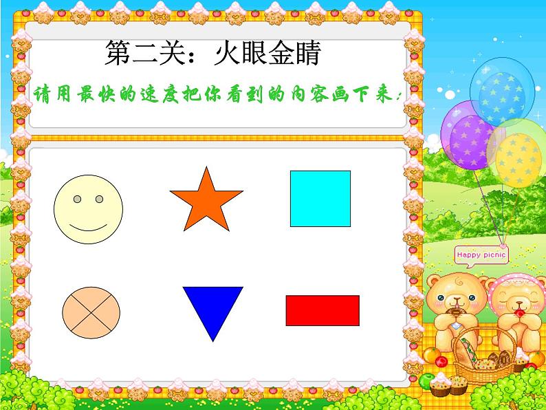 第二关:火眼金睛 请用最快的速度把你看到的内容画下来: