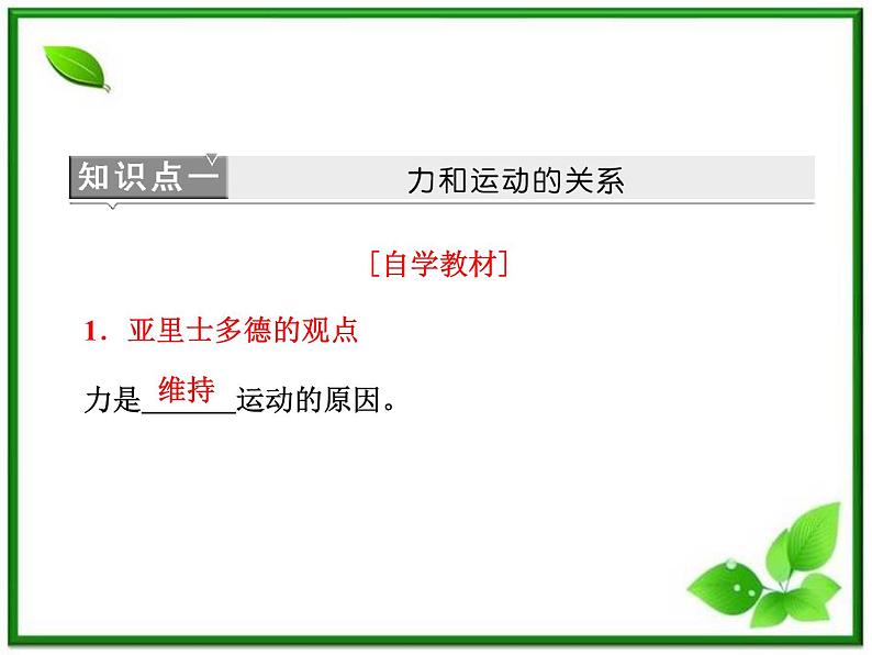 [自学教材]1.亚里士多德的观点力是 运动的原因。