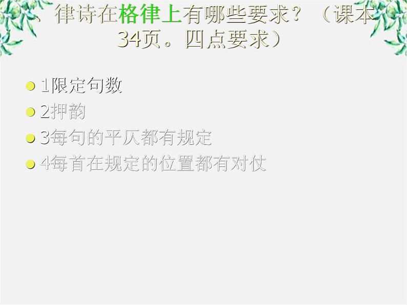 、律诗在格律上有哪些要求?(课本34页。四点要求)