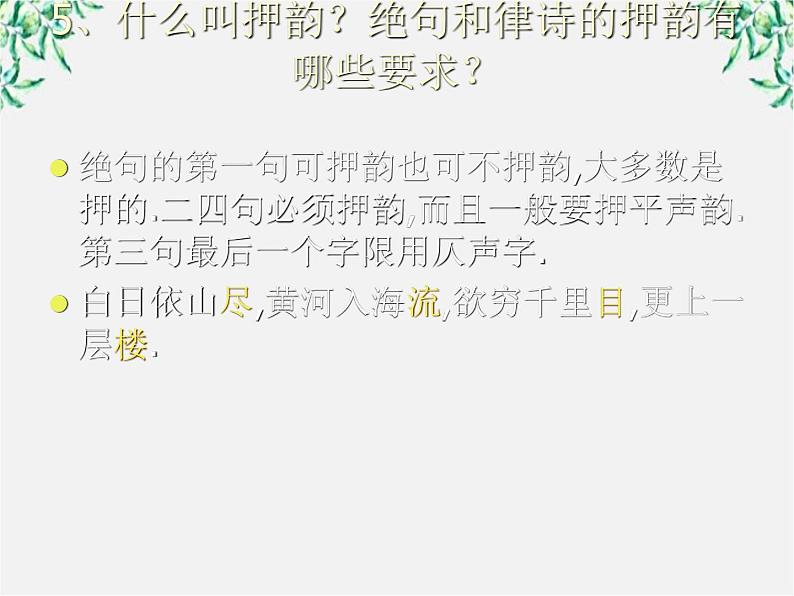 5、什么叫押韵?绝句和律诗的押韵有哪些要求?