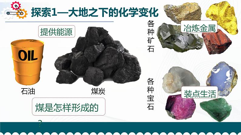地球很多资源如岩石、矿物、煤、石油、氧气等都是化学变化的产物。
