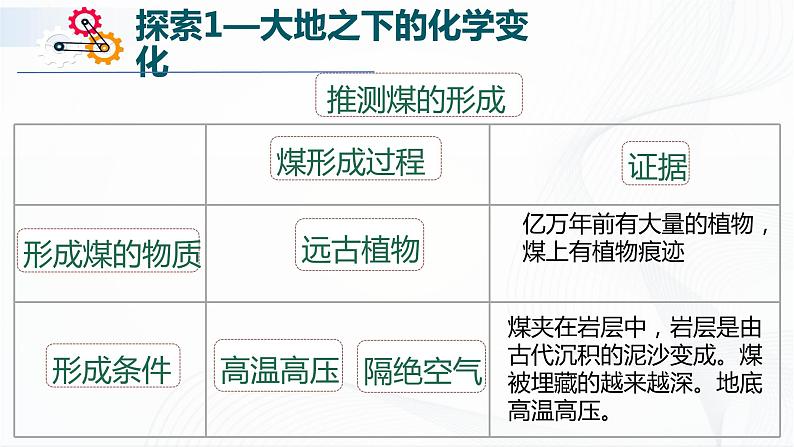 煤夹在岩层中,岩层是由古代沉积的泥沙变成。煤被埋藏的越来越深。地底高温高压。