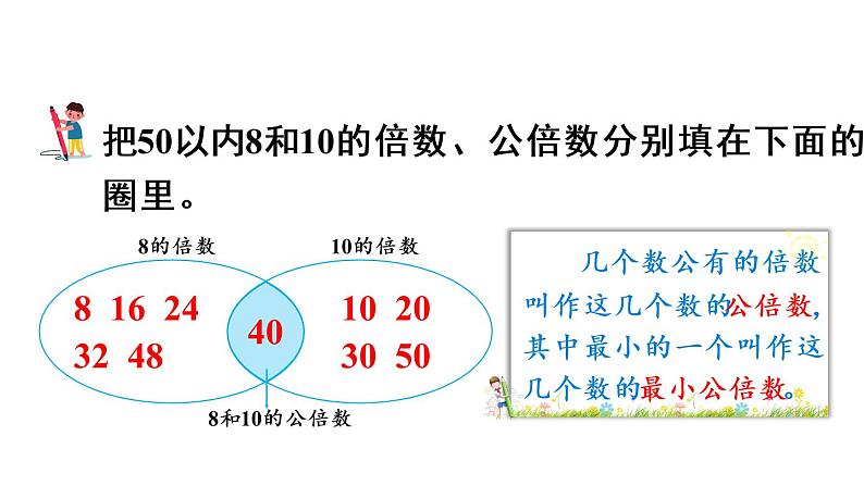 展开把50以内8和10的倍数、公倍数分别填在下面的圈里。