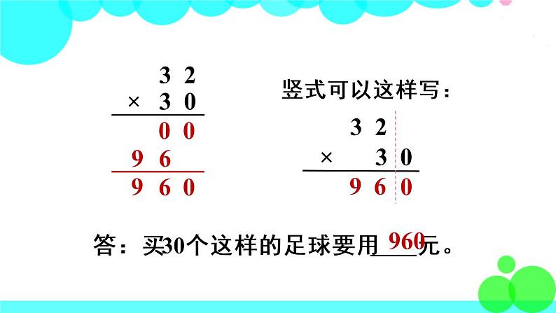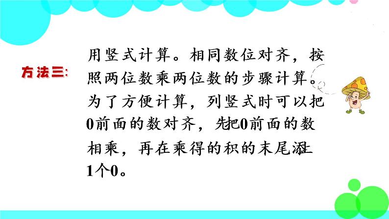 写竖式时把0前面的数对齐,用0前面的数去乘,再看乘数的末尾有几个0,就在乘得的积的末尾添上几个0。