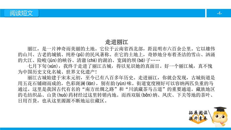四年级【专项训练】课外阅读:走进丽江(上)课件PPT