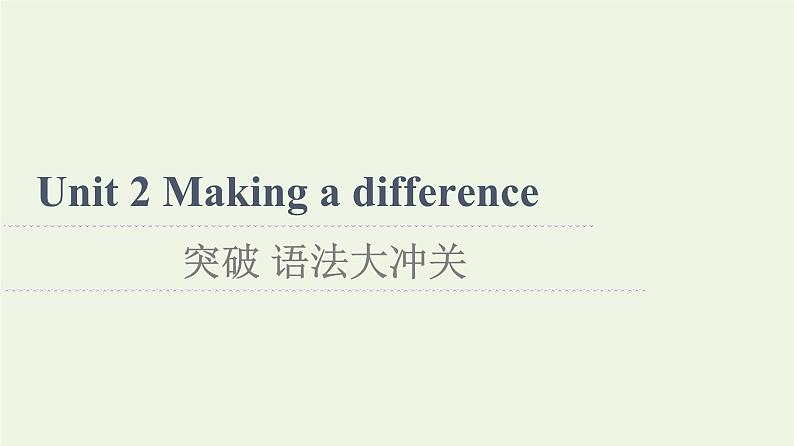 高中外研版 (2019)Unit 2 Making a difference教课课件ppt: 这是一份高中外研版 (2019)Unit 2 Making a difference教课课件ppt,文件包含外研版高中英语必修第三册Unit2突破语法大冲关课件ppt、外研版高中英语必修第三册课时分层作业5突破语法大冲关含答案doc、外研版高中英语必修第三册Unit2突破语法大冲关学案doc等3份课件配套教学资源,其中PPT共20页, 欢迎下载使用。
