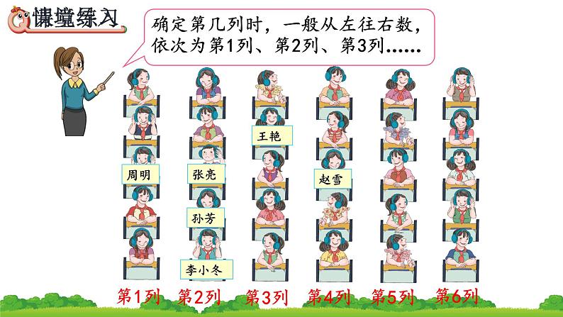 人教版五年级上册2 位置备课ppt课件: 这是一份人教版五年级上册2 位置备课ppt课件,共16页。PPT课件主要包含了前→后,说数对,蜘蛛的启示等内容,欢迎下载使用。