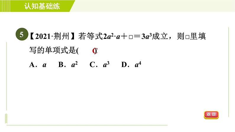 【2021·临沂】计算2a3·5a3的结果是( )A.10a6 B.10a9 C.7a3 D.7a6