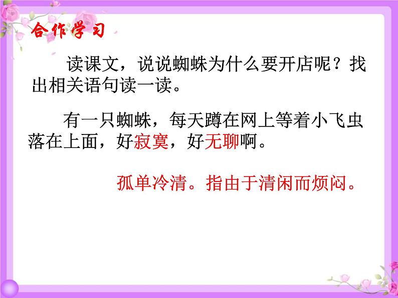 读课文,说说蜘蛛为什么要开店呢?找出相关语句读一读。