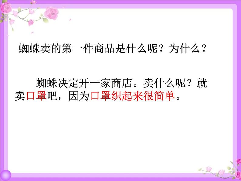 例:卖什么呢?就卖口罩吧,因为口罩织 起来很简单。