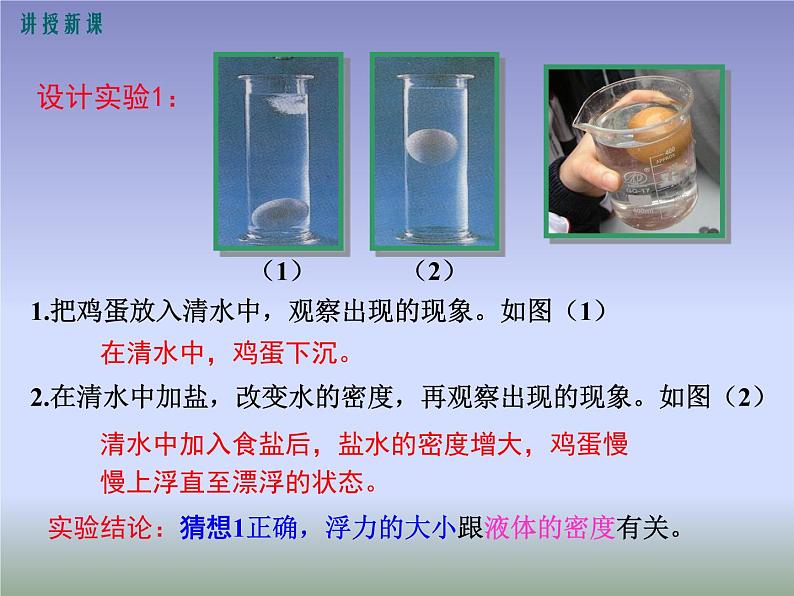 1.把鸡蛋放入清水中,观察出现的现象。如图(1)