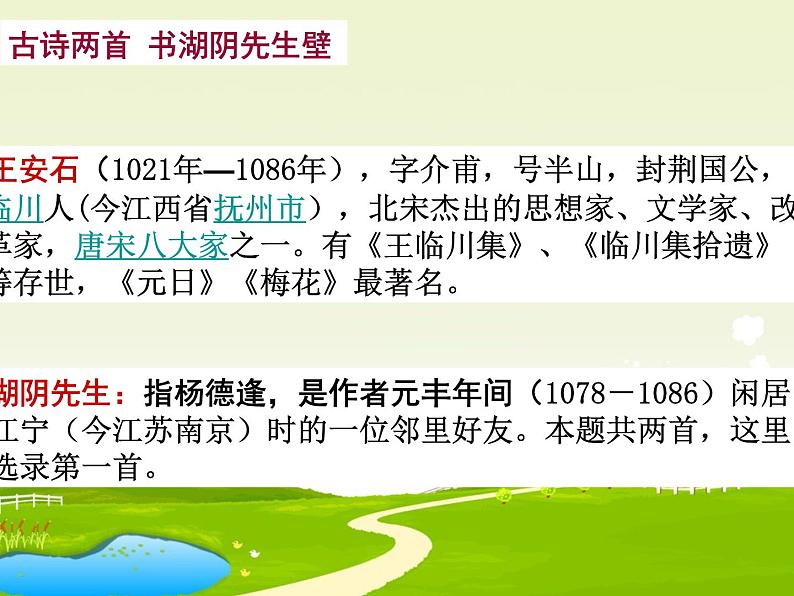 小学语文人教部编版六年级上册书湖阴先生壁教学ppt课件