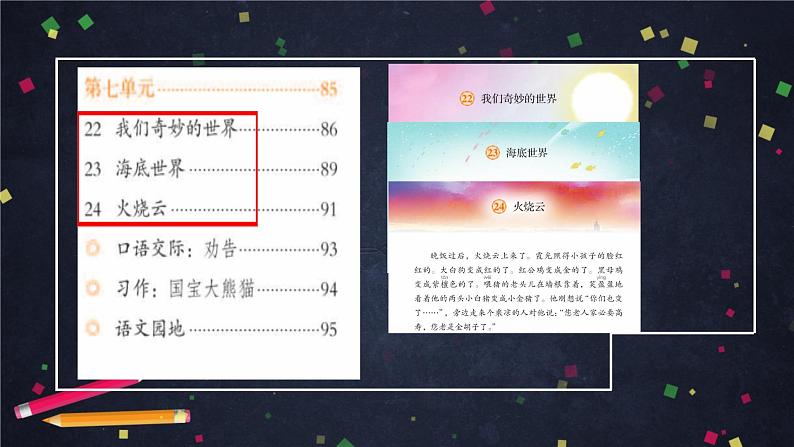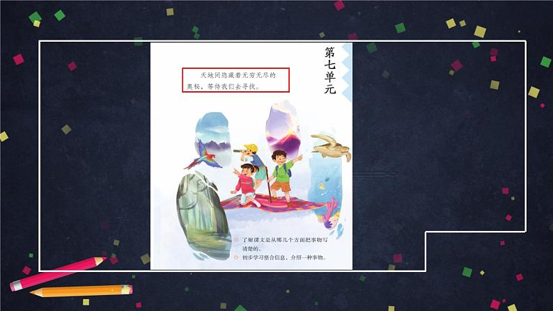 这是一份小学语文人教部编版三年级下册第七单元22 我们奇妙的世界说课课件ppt,文件包含三年级语文统编版-我们奇妙的世界-第一课时-pptpptx、三年级语文统编版-我们奇妙的世界-第二课时-pptpptx、三年级语文统编版-我们奇妙的世界-第一课时教案docx、三年级语文统编版-我们奇妙的世界-第二课时-学习任务单docx、三年级语文统编版-我们奇妙的世界-第二课时-教案docx、三年级语文统编版-我们奇妙的世界-第一课时学习任务单docx等6份课件配套教学资源,其中PPT共102页, 欢迎下载使用。