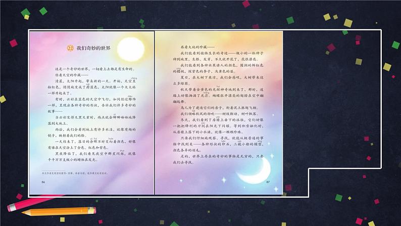 有感情地朗读3-8自然段,从天空的珍藏中感受世界的奇妙。