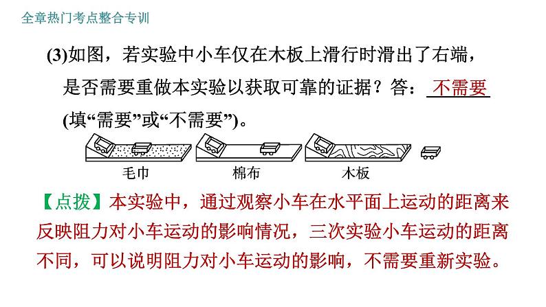 【点拨】由于小车做匀速直线运动,则其受到的拉力与阻力是一对平衡力,两者大小相等,方向相反。