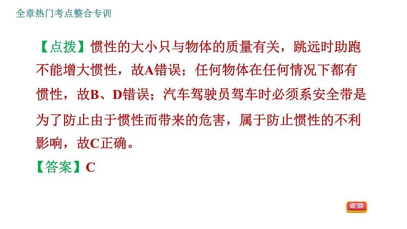 这是一份初中物理人教版八年级下册第八章 运动和力综合与测试习题ppt课件,文件包含人教版八年级物理第8章831摩擦力习题课件ppt、人教版八年级物理第8章全章热门考点整合专训习题课件ppt、人教版八年级物理第8章82二力平衡习题课件ppt、人教版八年级物理第8章832摩擦力与社会生活习题课件ppt、人教版八年级物理第8章素养集训探究滑动摩擦力的大小习题课件ppt、人教版八年级物理第8章812惯性习题课件ppt、人教版八年级物理第8章811牛顿第一定律习题课件ppt等7份课件配套教学资源,其中PPT共213页, 欢迎下载使用。
