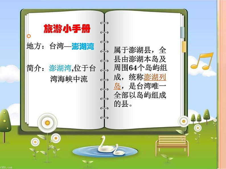 地方:台湾—澎湖湾 简介:澎湖湾,位于台 湾海峡中流