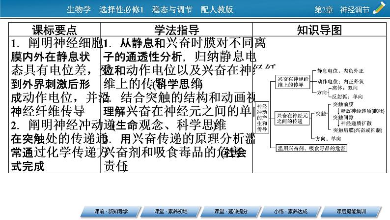 这是一份高中生物人教版 (2019)选择性必修1第3节 神经冲动的产生和传导示范课课件ppt,共25页。PPT课件主要包含了本章内容结构,神经冲动的产生和传导,第3节,自主预习,电信号,神经冲动,突触前膜,突触间隙,突触后膜,线粒体等内容,欢迎下载使用。