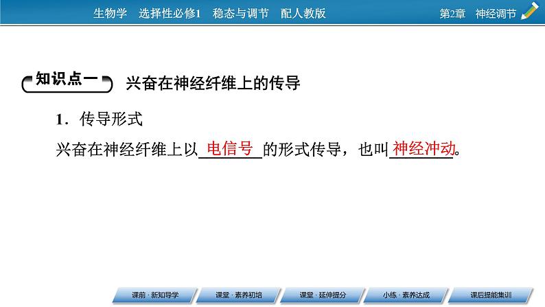 1.传导形式兴奋在神经纤维上以________的形式传导,也叫________。