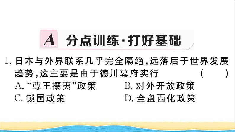 这是一份初中历史人教部编版九年级下册第4课 日本明治维新作业ppt课件