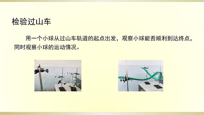 用一个小球从过山车轨道的起点出发,观察小球能否顺利到达终点,同时观察小球的运动情况。