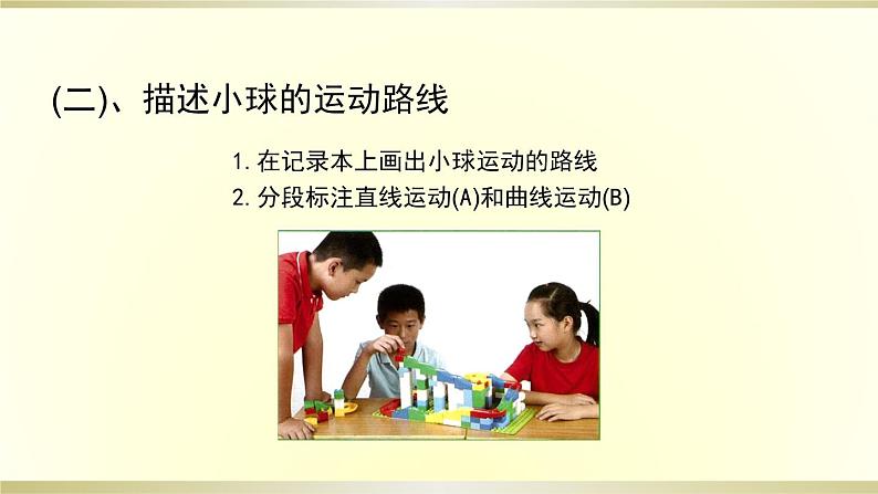 1.在记录本上画出小球运动的路线2.分段标注直线运动(A)和曲线运动(B)