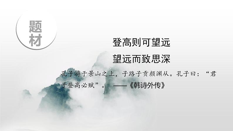 望远而致思深 孔子游于景山之上,子路子贡颜渊从。孔子曰:“君子登高必赋”。 ——《韩诗外传》