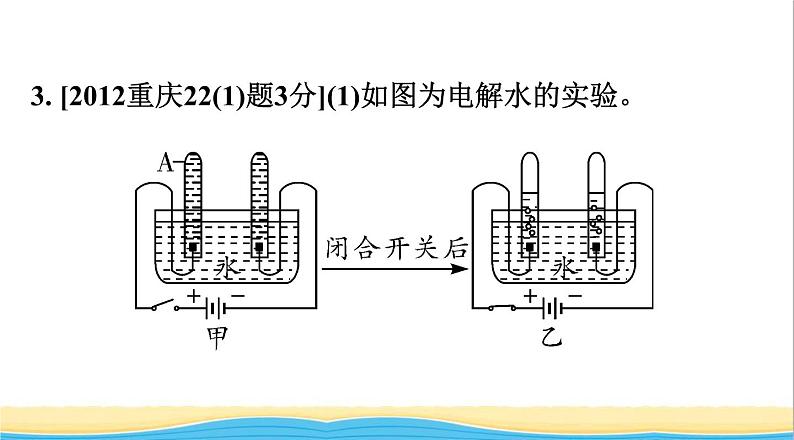 3. [2012重庆22(1)题3分](1)如图为电解水的实验。