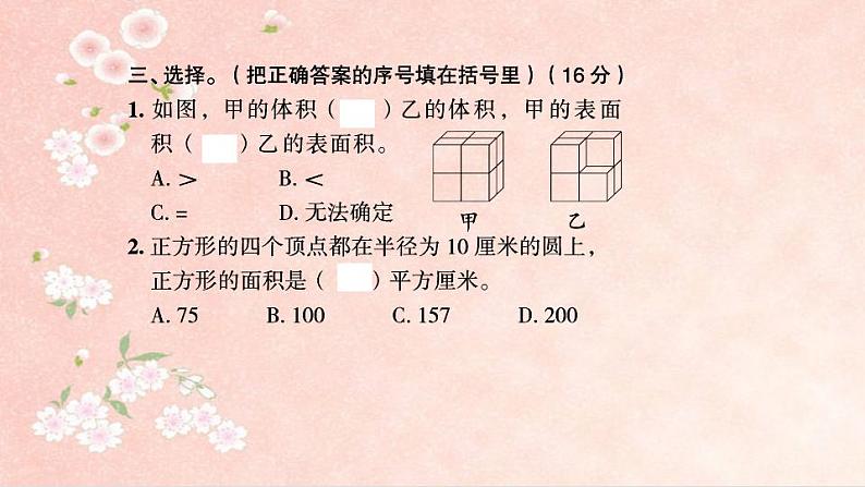 六年级下册数学习题课件(图片版)-小升初复习 立体图形的认识与测量 浙教版