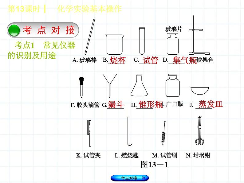 这是一份福建省中考化学复习专题五科学探究第13课时化学实验基本操作课件,共24页。PPT课件主要包含了主题五科学探究,图13-1,蒸发皿,集气瓶,锥形瓶,CJL,图13-2,图13-3,图13-4,滴加液体等内容,欢迎下载使用。