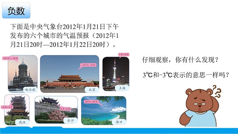 这是一份人教版六年级下册数的认识教学ppt课件,文件包含人教版小学数学六下11《负数的认识》PPT课件pptx、人教版小学数学六下11《负数的认识》教学设计docx、人教版小学数学六下11《负数的认识》同步练习docx等3份课件配套教学资源,其中PPT共23页, 欢迎下载使用。