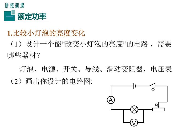 1.比较小灯泡的亮度变化(1)设计一个能“改变小灯泡的亮度”的电路 ,需要哪些器材?
