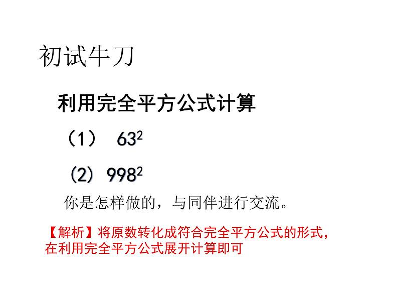 【解析】将原数转化成符合完全平方公式的形式,在利用完全平方公式展开计算即可