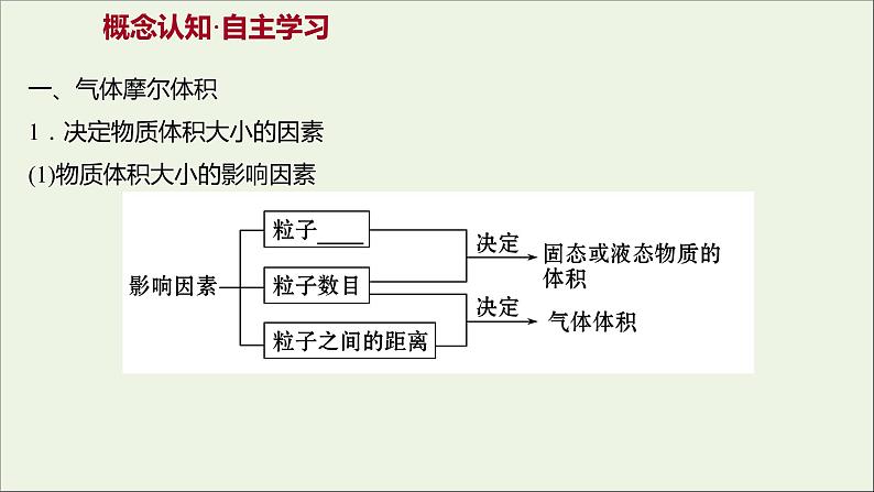 一、气体摩尔体积1.决定物质体积大小的因素(1)物质体积大小的影响因素
