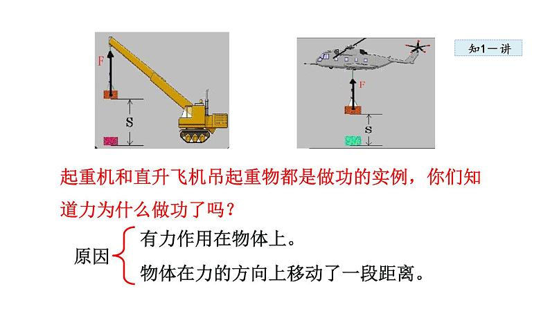 起重机和直升飞机吊起重物都是做功的实例,你们知道力为什么做功了吗?