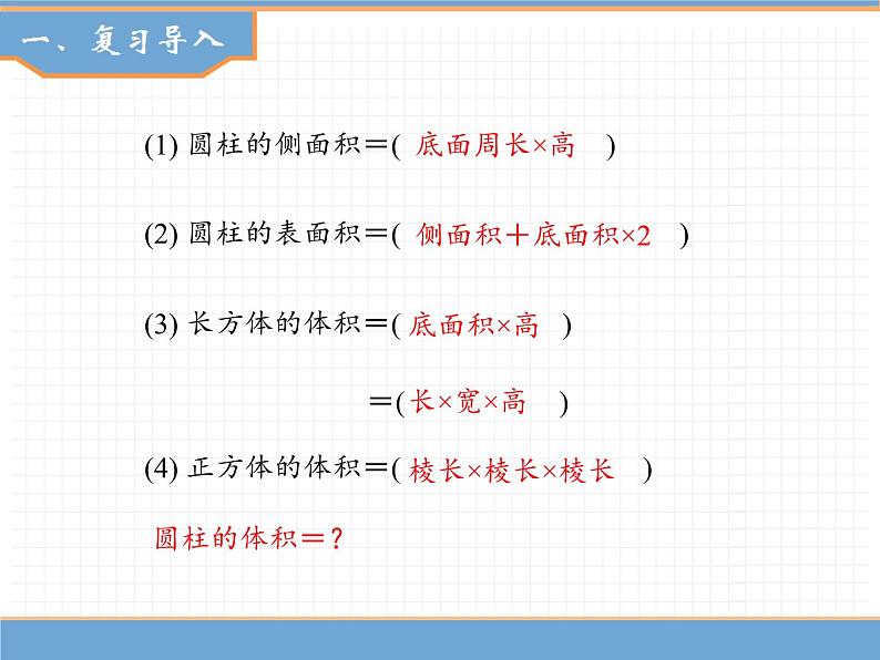 (1) 圆柱的侧面积=( )
