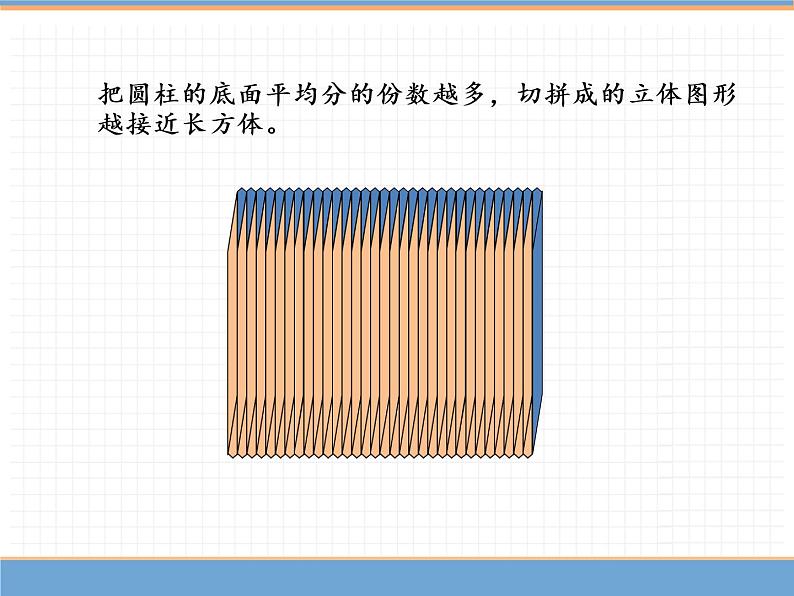 把圆柱的底面平均分的份数越多,切拼成的立体图形越接近长方体。