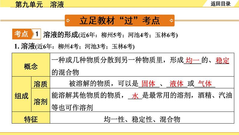 1. 溶液(近6年:柳州4考;河池3考;玉林6考)