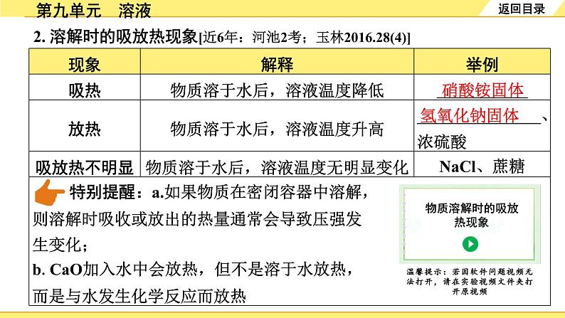 2. 溶解时的吸放热现象[近6年:河池2考;玉林2016.28(4)]