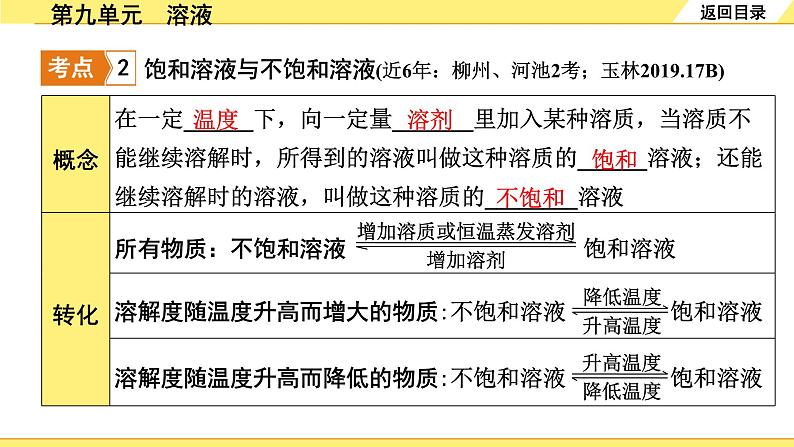 饱和溶液与不饱和溶液(近6年:柳州、河池2考;玉林2019.17B)
