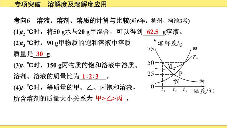 溶解度及溶解度应用(近6年:柳州、河池、玉林6考)