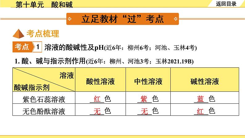 溶液的酸碱性与pH(近6年:柳州6考;河池、玉林4考)